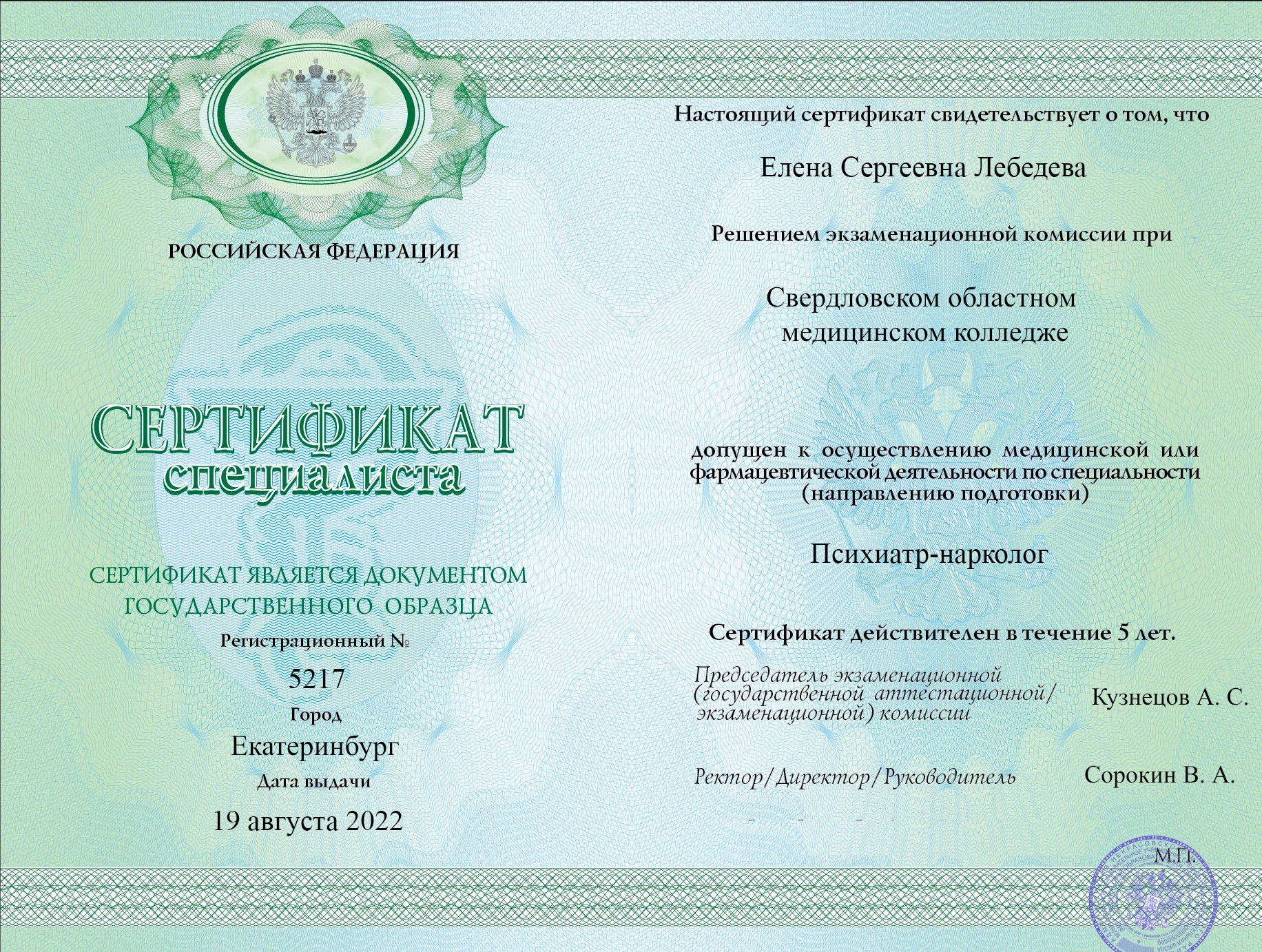 Елена Сергеевна Лебедева врач нарколог клиники доктора Стукаловой в Нижних Сергах